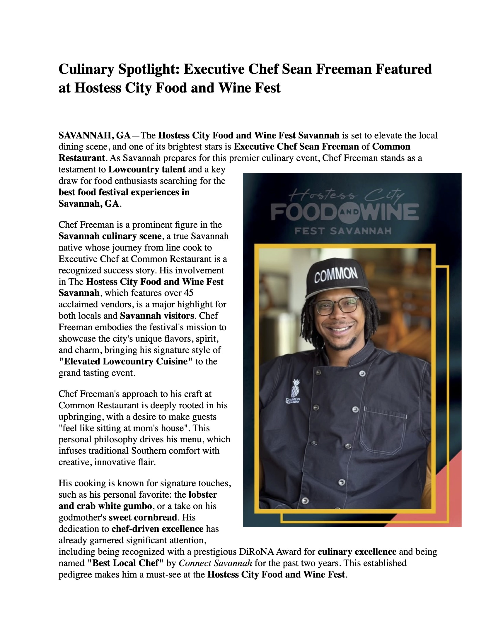 Chef Sean Freeman Featured at Hostess City Food and Wine Fest